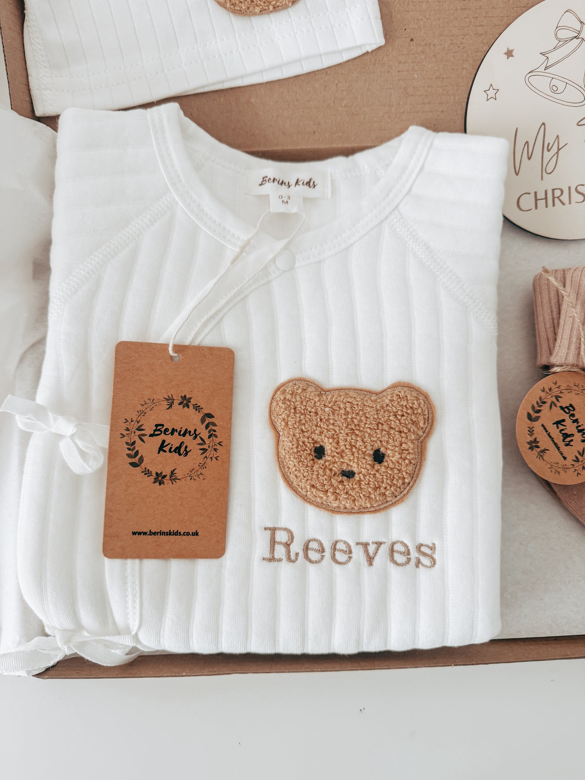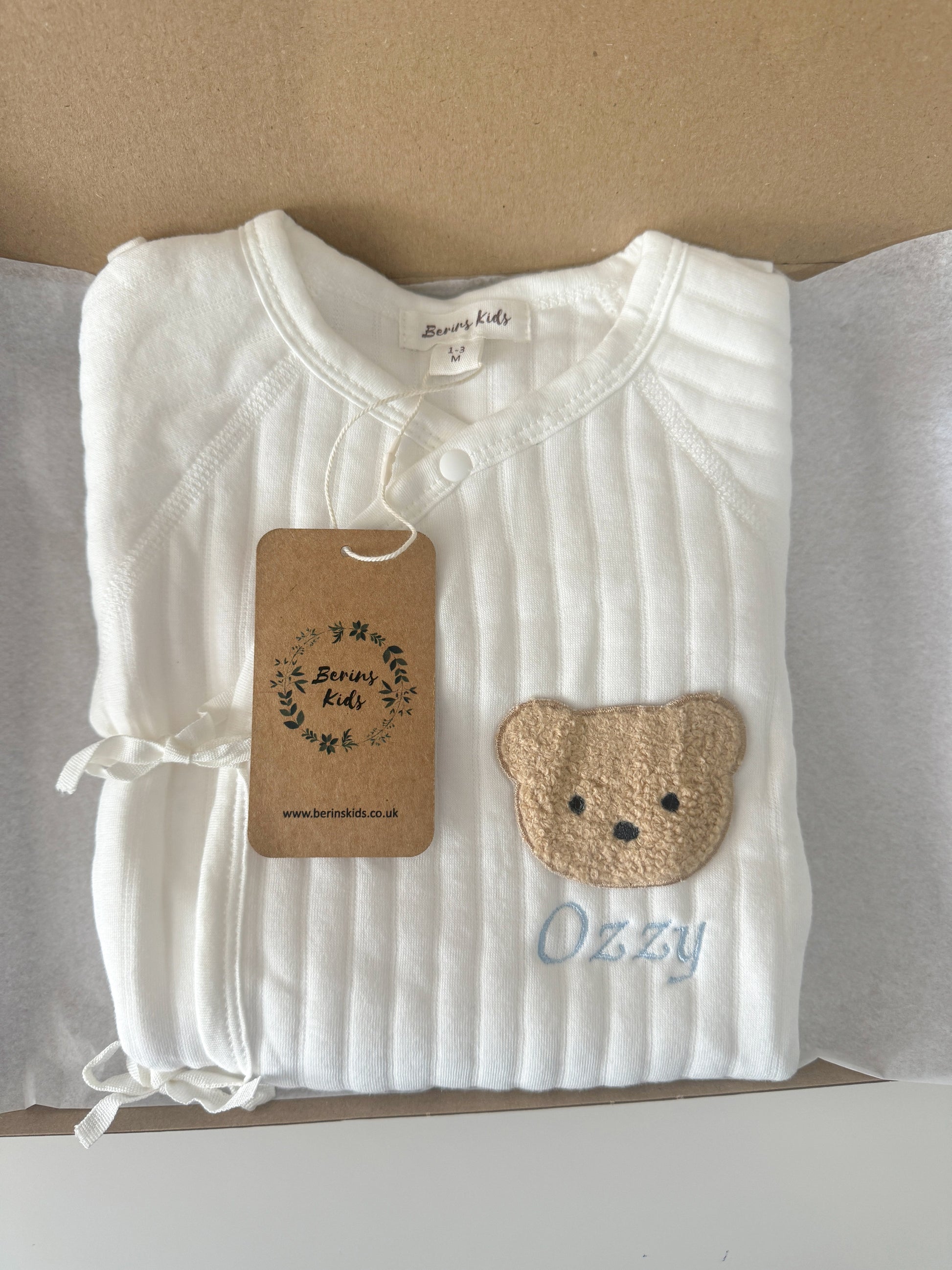 Baby Autumn/Winter Teddy Bear Romper(WHITE)- Personalised Bodysuit for Newborn Boy Girl